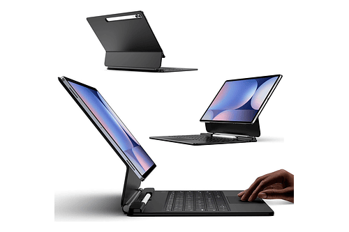 Soporte magnético fácil de instalar: puedes fijar tu tablet a la cubierta trasera magnéticamente, ajustar el soporte voladizo flotante con un movimiento suave y transformar tu tablet convierte tu tableta en un portátil de alto rendimiento y fácil de usar en un segundo Es perfecto para viajes, negocios y escuela.