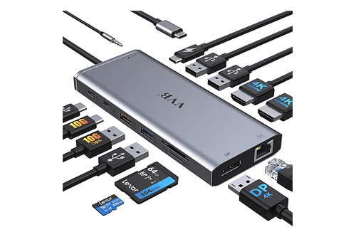 Adaptador Hub 14en1 Usb C 3.1 10gbps Ethernet Dp 2hdmi Jack