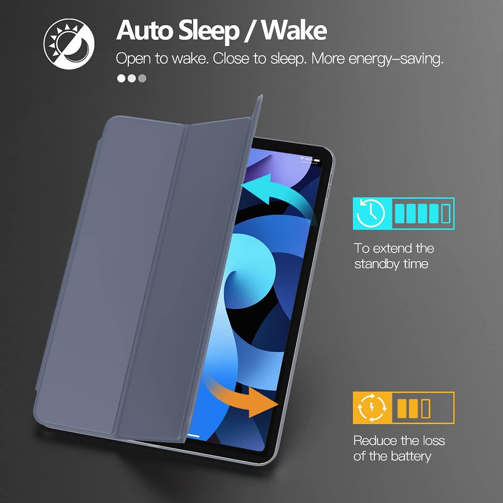 Smart Folio Case Para iPad Air 4 (2020) / iPad Air 5 (2022) A2324 A2325 A2588 A2589 A2316 A2072 Color Negro Lavanda Grisaceo