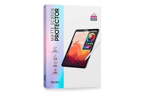 El protector de pantalla Benks para iPad está hecho de PET (Tereftalato de polietileno) de alta calidad fabricado en Japón, diseñado específicamente para usuarios del Apple Pencil.