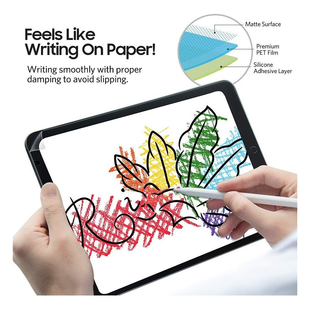 Nota: La película protectora afectará un poco la claridad de la pantalla de su iPad debido a la textura mate en comparación con la película de vidrio transparente. Pero, en cambio, obtendrá una excelente experiencia de escritura.