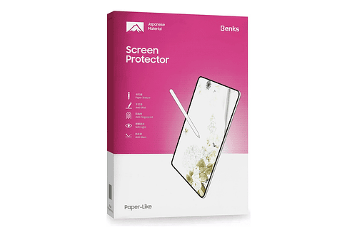 El protector de pantalla Benks para iPad está hecho de PET (Tereftalato de polietileno) de alta calidad fabricado en Japón, diseñado específicamente para usuarios del Apple Pencil.
