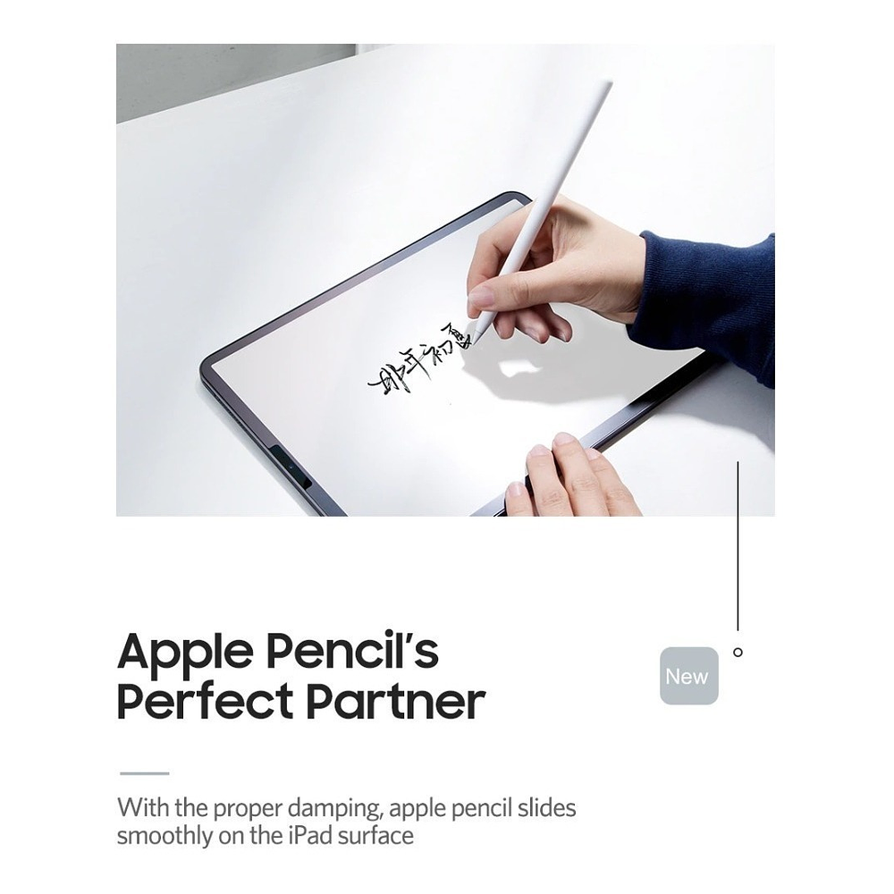 Nota: La película protectora afectará un poco la claridad de la pantalla de su iPad debido a la textura mate en comparación con la película de vidrio transparente. Pero, en cambio, obtendrá una excelente experiencia de escritura.