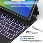 Tipo de día y noche: esta funda de teclado premium para iPad viene con una retroiluminación. Los 3 niveles de brillo te permiten trabajar cómodamente en cualquier momento del día. La batería de 750 mAh y el diseño ultra eficiente te permiten trabajar más tiempo con una sola carga. Trabaja diariamente durante 3 meses o por la noche durante 2 semanas con una sola carga y luego recarga rápidamente con una cómoda carga USB-C